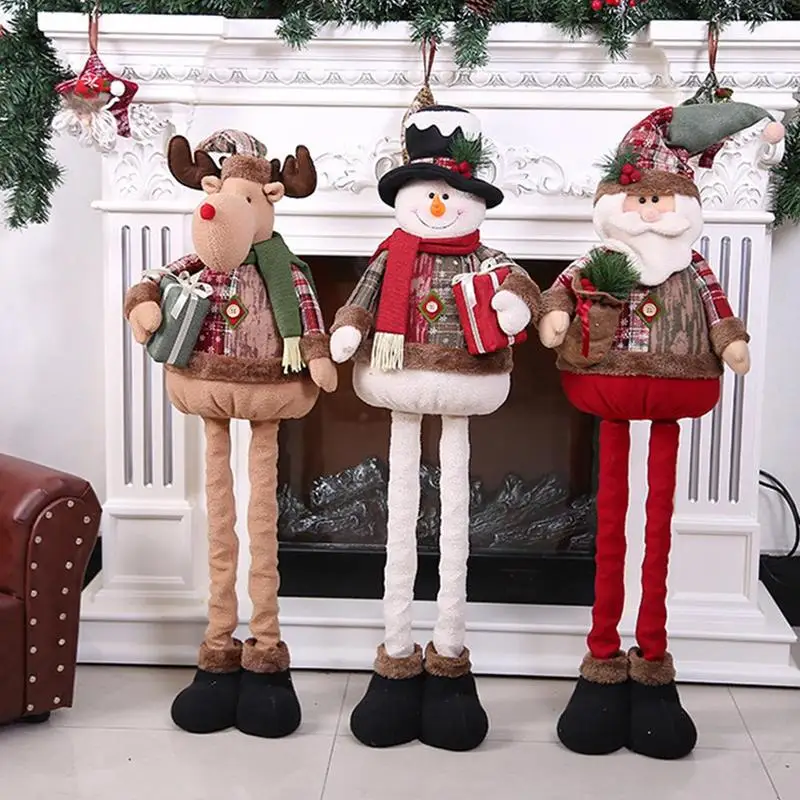 1pc Christmas Telescopic Standing Doll Cartoon Santa Claus Snowman Elk Height Adjustable DIY Doll S