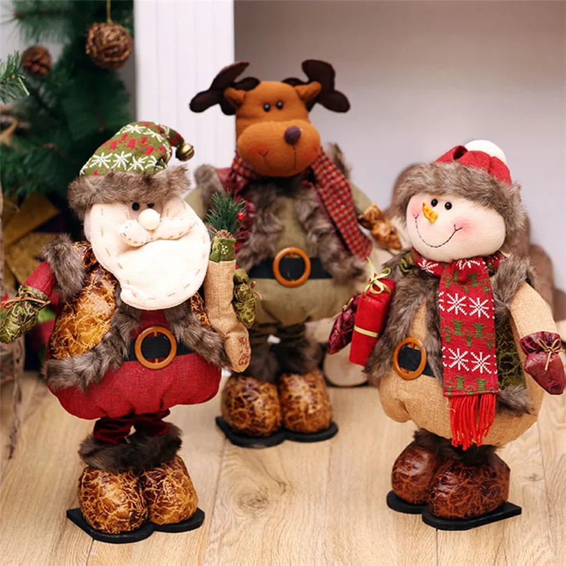 Christmas Decorations for Home Christmas Dolls Xmas Santa Snowman Elk Stand Toys Figurines Retracta